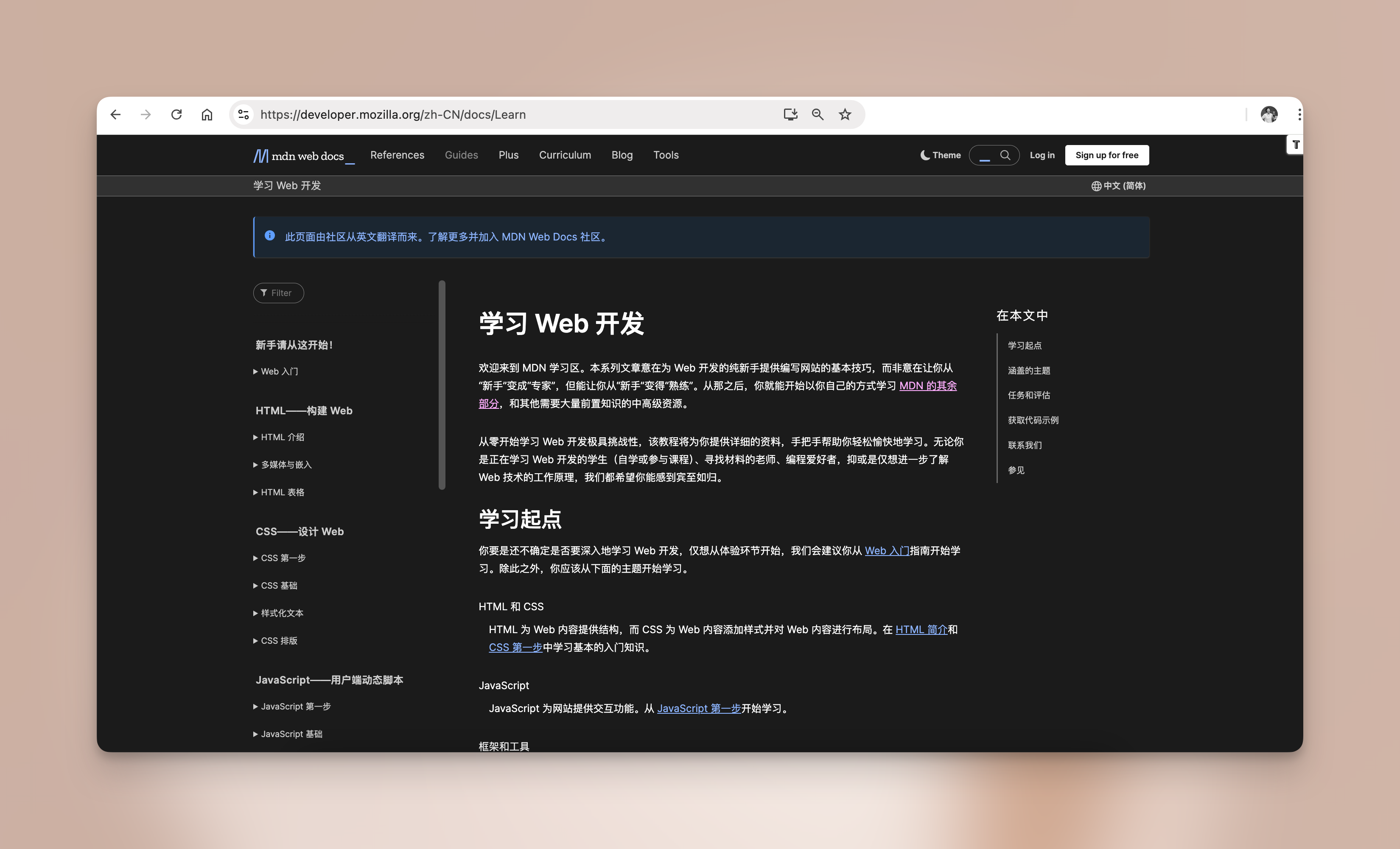 MDN 的主题学习路径: