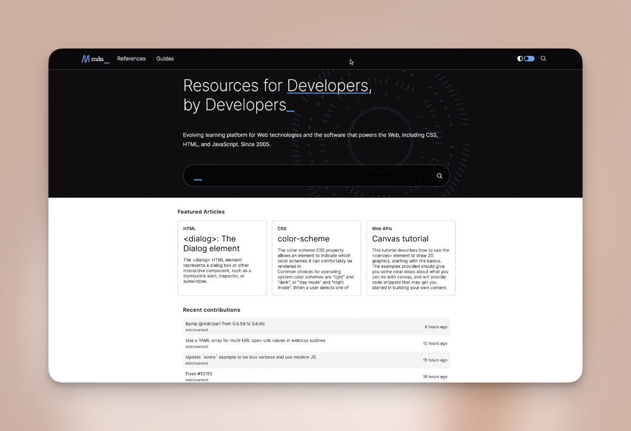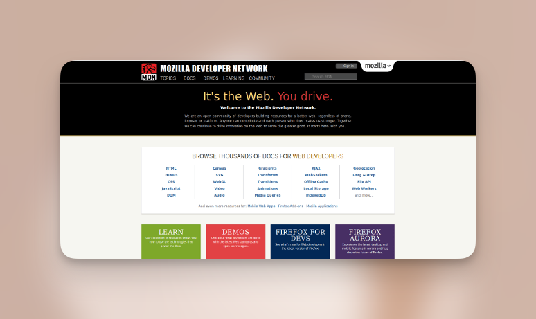 - MDN 的前身是 Netscape DevEdge,它是一个早期的开发者文档网站。