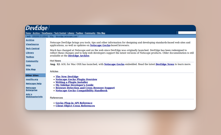 - 2004年10月,这个受欢迎的开发者网站被 Netscape 的母公司 AOL 关闭。