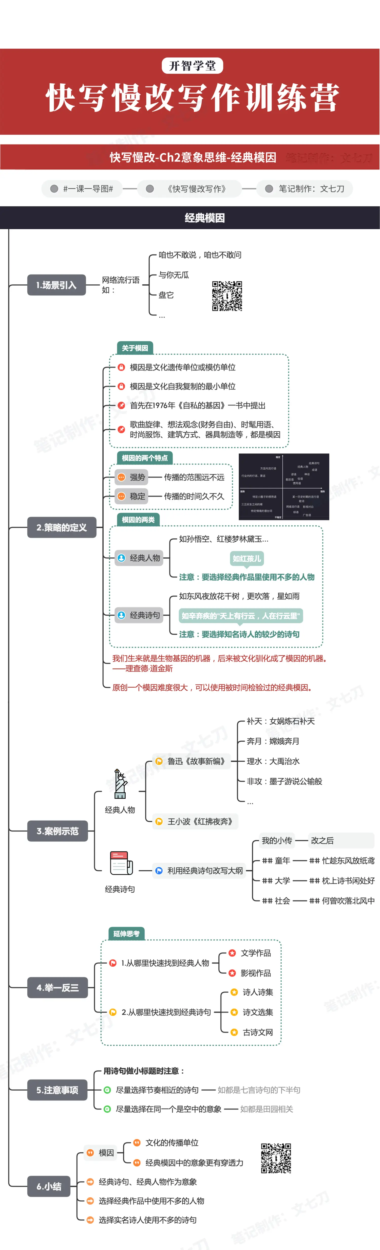 开智学堂05《快写慢改写作训练营》课程笔记·思维导图【Ch2意象思维-2.2经典模因】