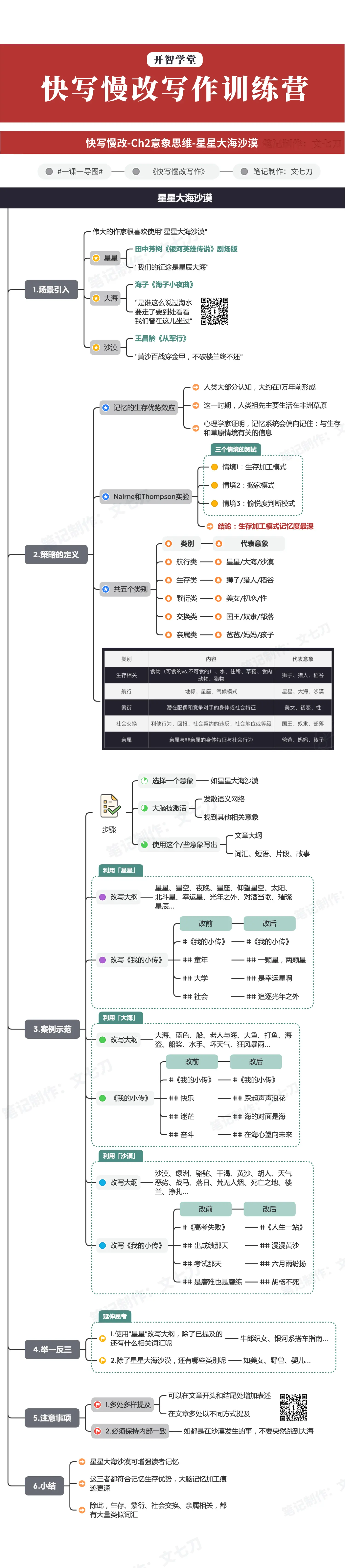 开智学堂06《快写慢改写作训练营》课程笔记·思维导图【Ch2意象思维-2.3星星大海沙漠】